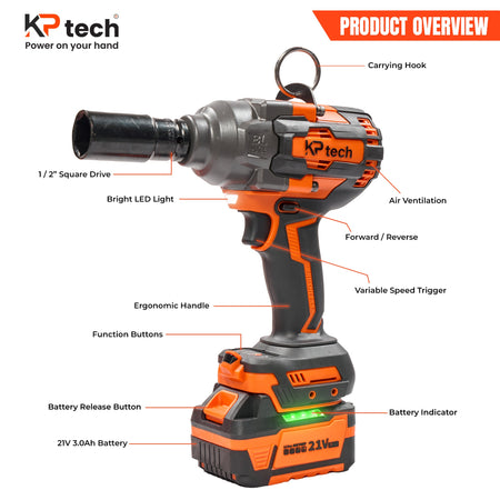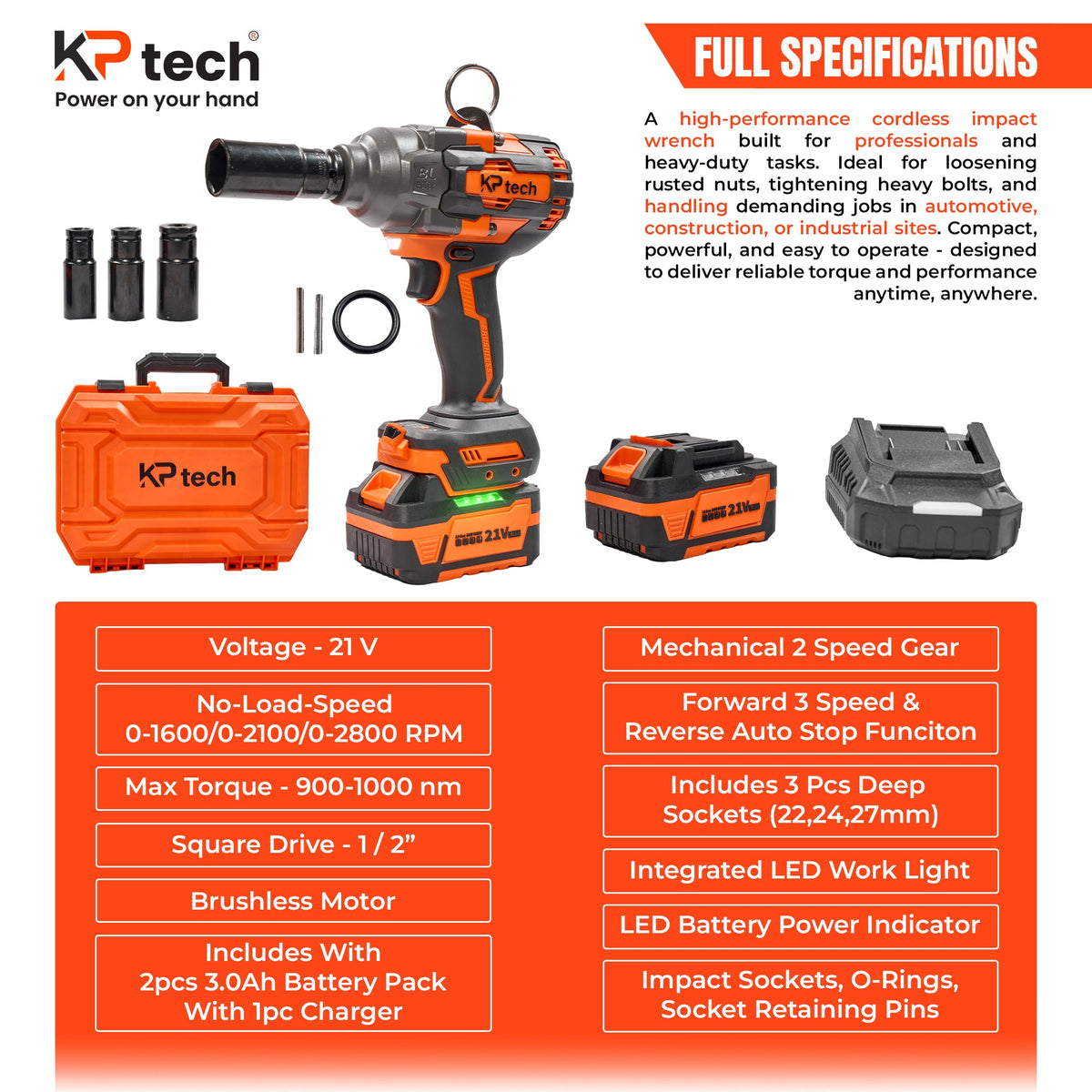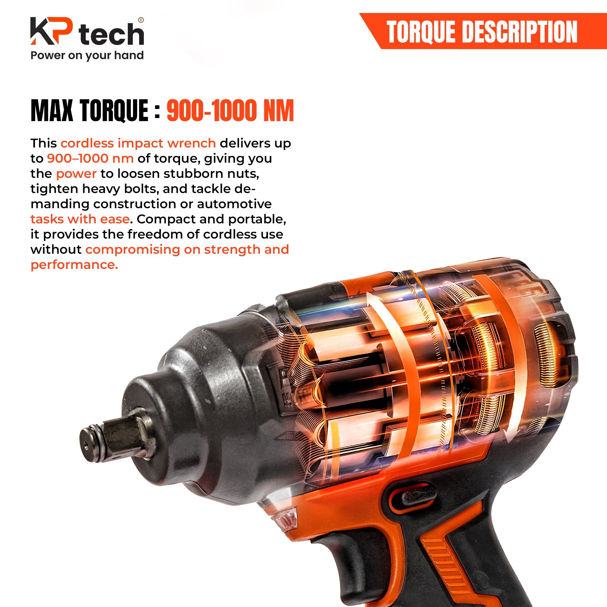 KP TECH Cordless Impact Wrench – 1000Nm High Power Performance