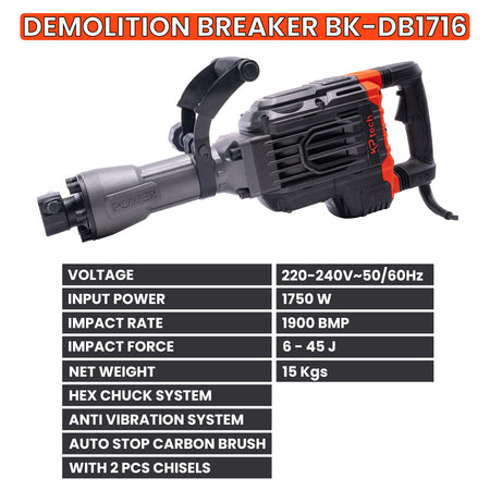 Conquer the most challenging demolition tasks with our powerful and durable demolition breaker. Designed for maximum performance, this tool is ideal for construction and renovation projects requiring heavy-duty demolition power.