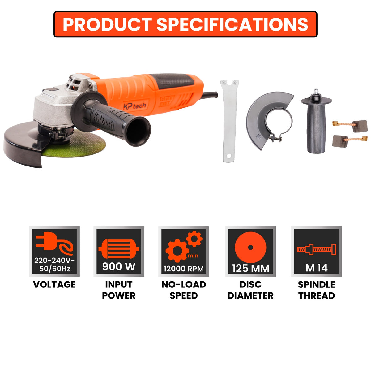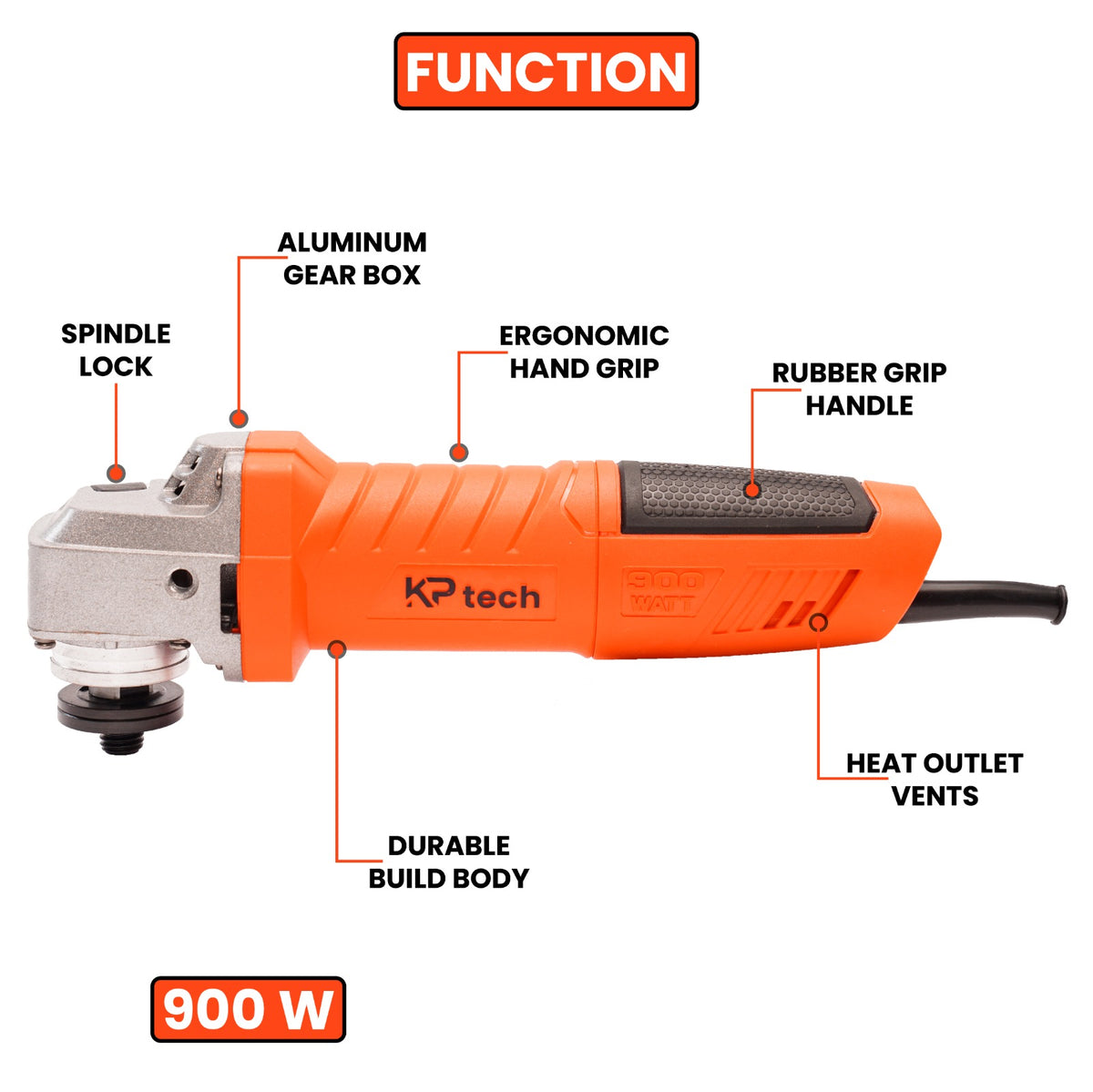 KP Tech Angle Grinder 900W | 12000rpm | With 5 inch disc