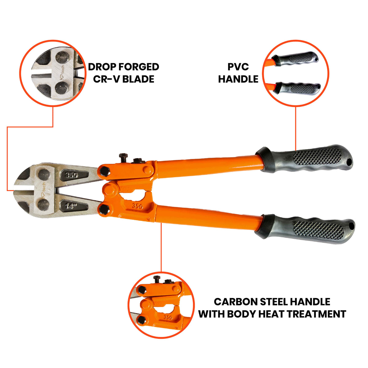 KP Tech Bolt Cutter - 14 Inch HT-BCE1401 | Heavy-Duty Steel Jaws | High-Leverage Cutting | Ideal for Small Bolts, Chains & Wire