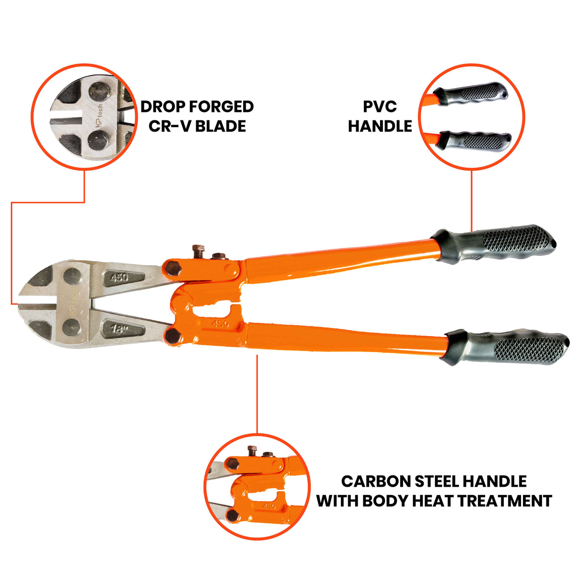 KP Tech Bolt Cutter - 18 Inch HT-BCE1801 | Heavy-Duty Steel Jaws | High-Leverage Cutting | Ideal for Bolts, Chains & Wire