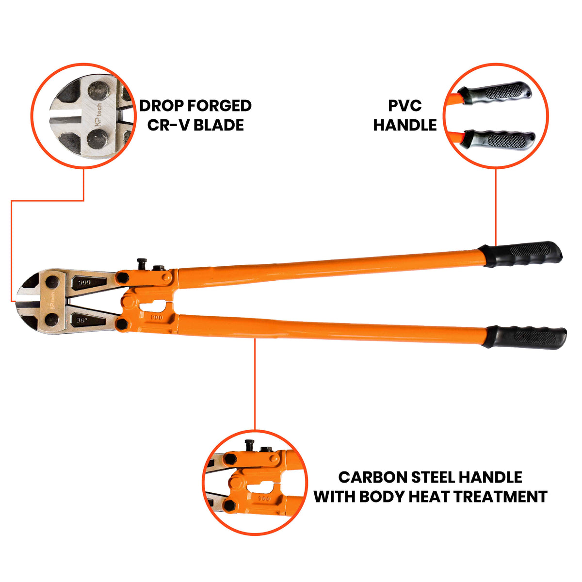 KP Tech Bolt Cutter - 36 Inch HT-BCE3601 | Heavy-Duty Steel Jaws | High-Leverage Cutting | Ideal for Thick Bolts, Chains & Wire
