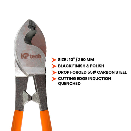 KP Tech Cable Cutter - 10 Inch HT-CC1001 | Heavy-Duty Steel Blades | Clean & Precise Cutting | Ideal for Medium Cables & Wires