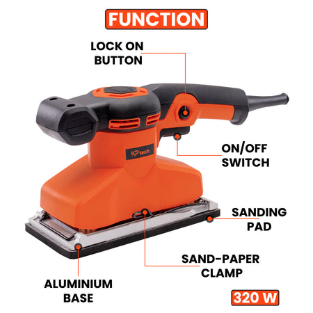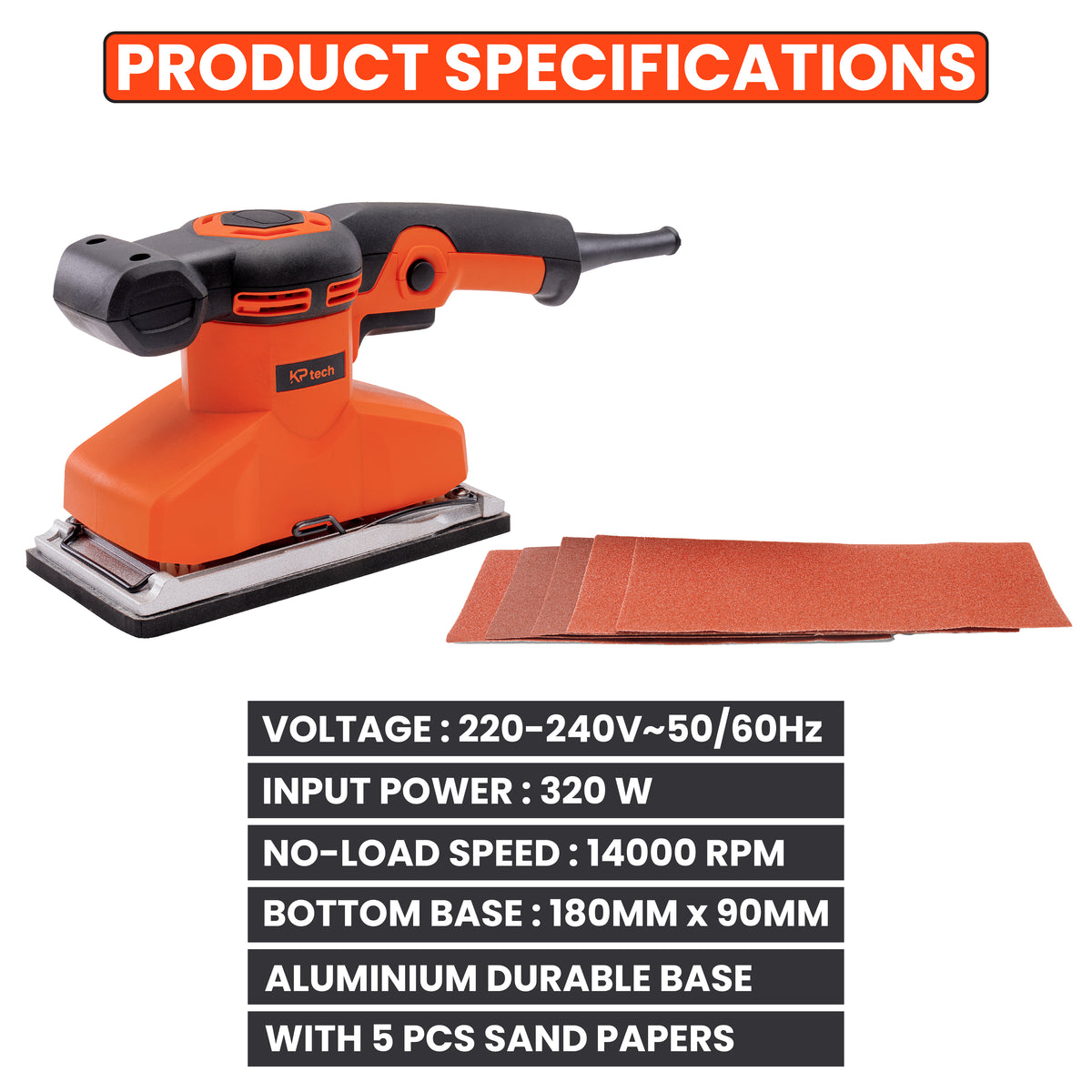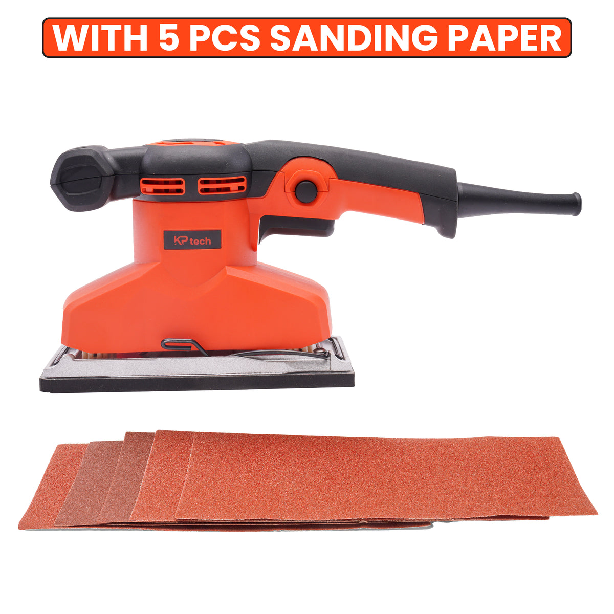 KP Tech Finishing sander 320W | 14000rpm | With Aluminium durable base and 5pcs sand papers