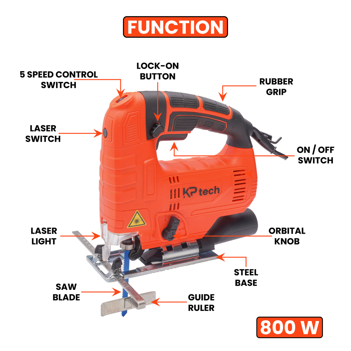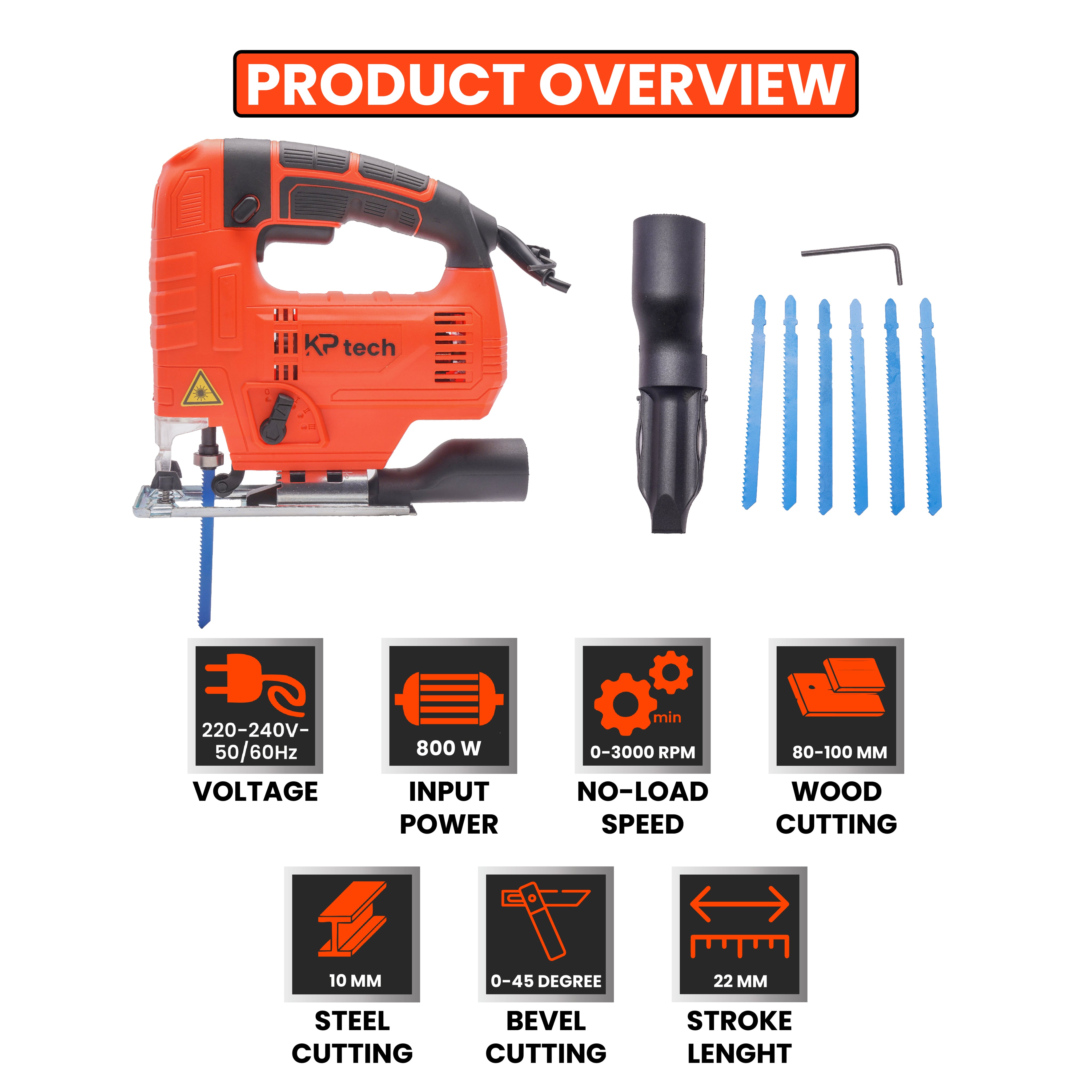 KP Tech Jig Saw 800W | 3000 RPM | With variable speed and laser marking | 5pcs of saw blades