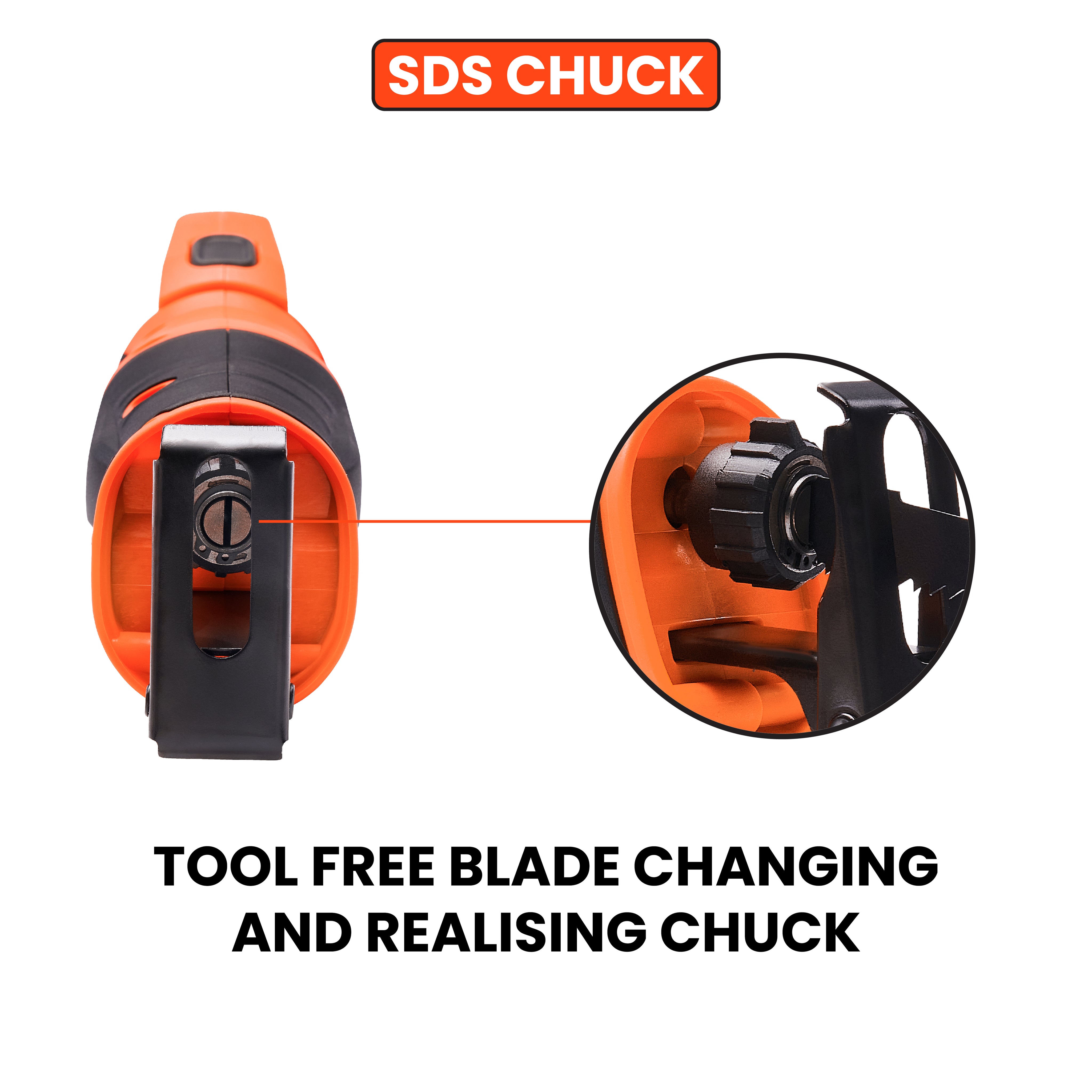 - SDS Blade Change Chuck: Quick and easy blade changes without tools