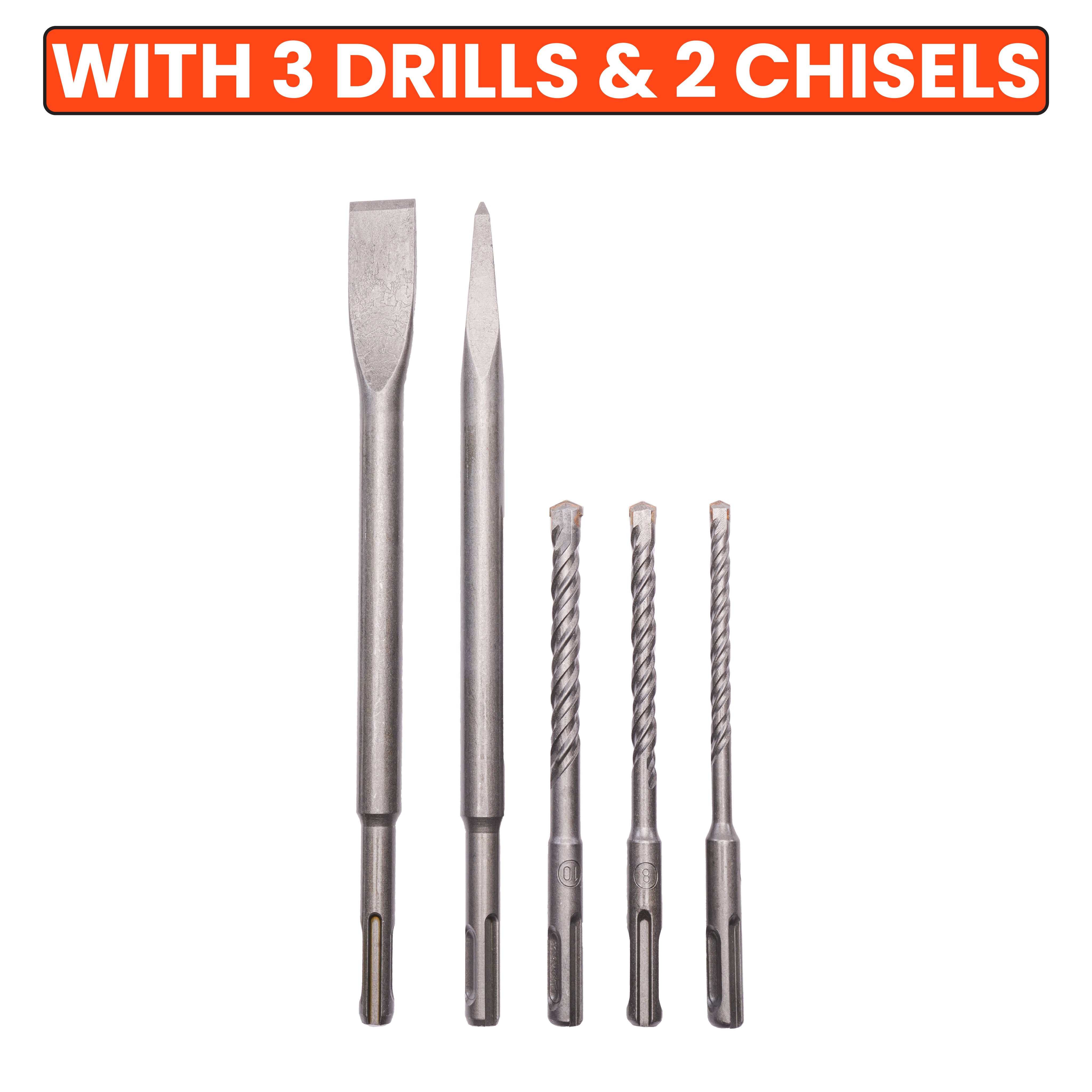 - Accessories Included: 3 Drills and 2 Chisels for versatile applications
