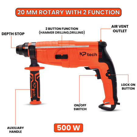 KP Tech Rotary Hammer 500W | 850 RPM | With 3 SDS-PLUS drills