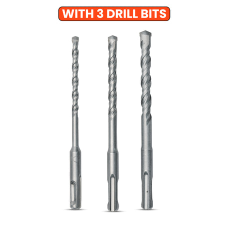 - Accessories Included: 3 SDS-PLUS Drills for versatile applications