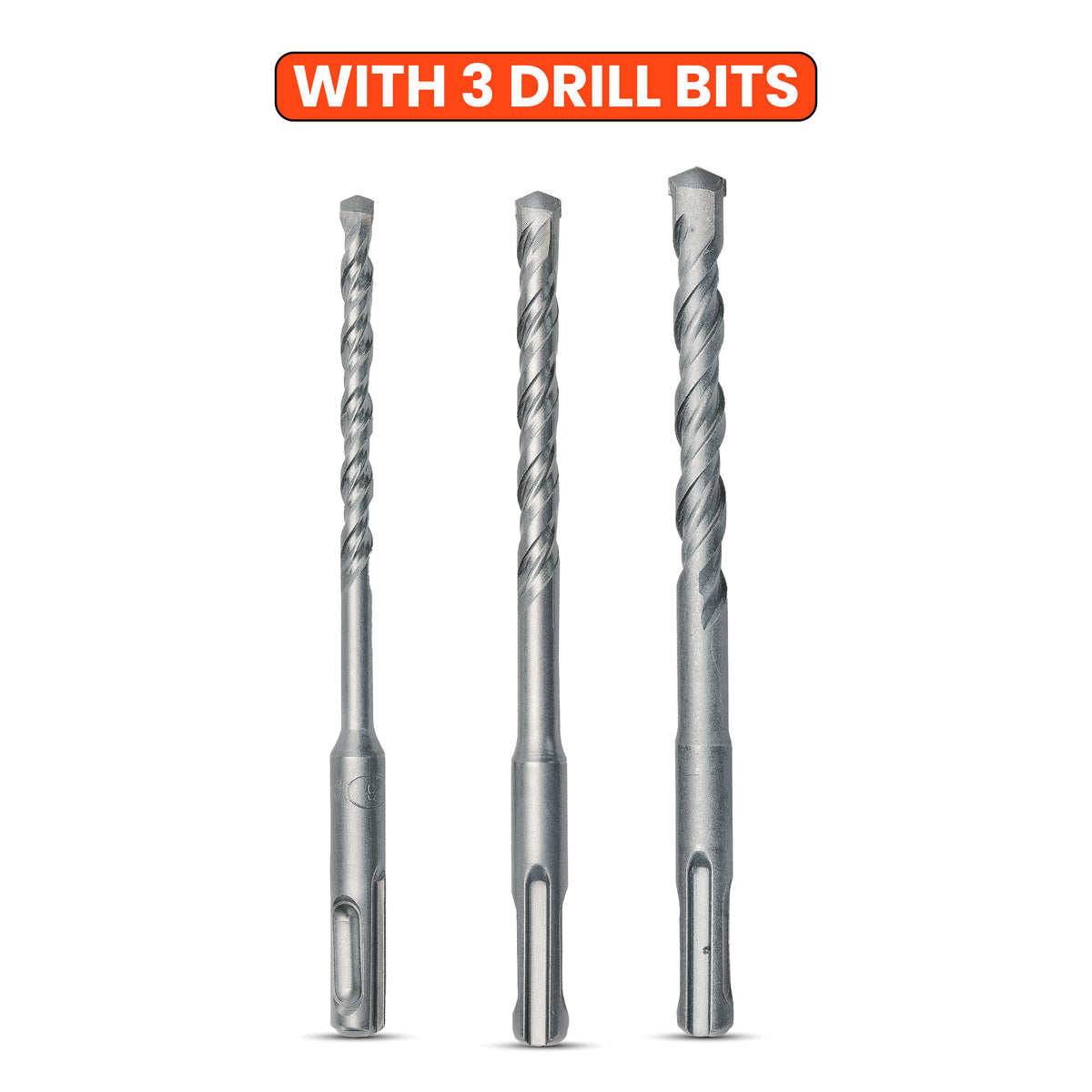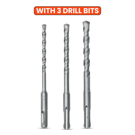 - Accessories Included: 3 SDS-PLUS Drills for versatile applications
