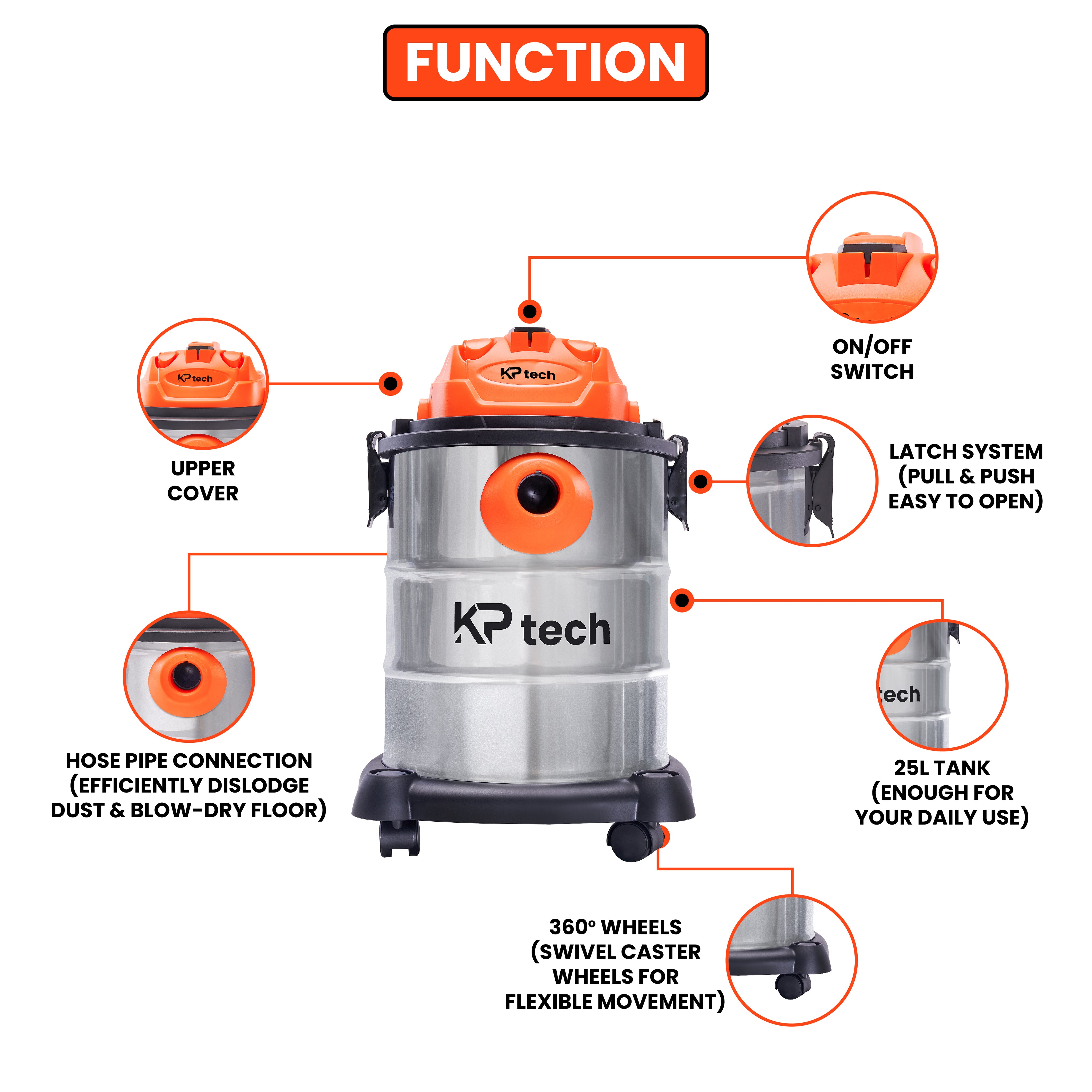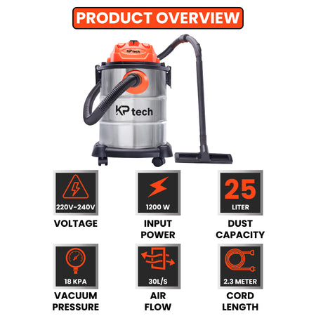 KP Tech Vacuum Cleaner Wet & Dry 1200W | 25L capacity