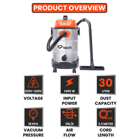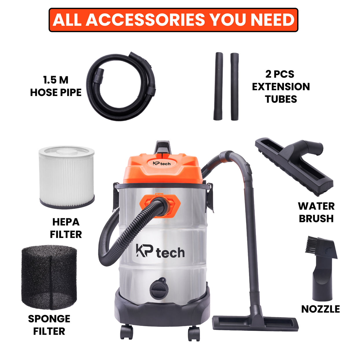 KP Tech Vacuum Cleaner Wet & Dry 1400W | 30L capacity